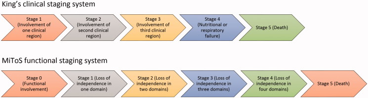 Figure. Flowchart of ALS staging systems and their definitions (King’s staging and MiToS staging).